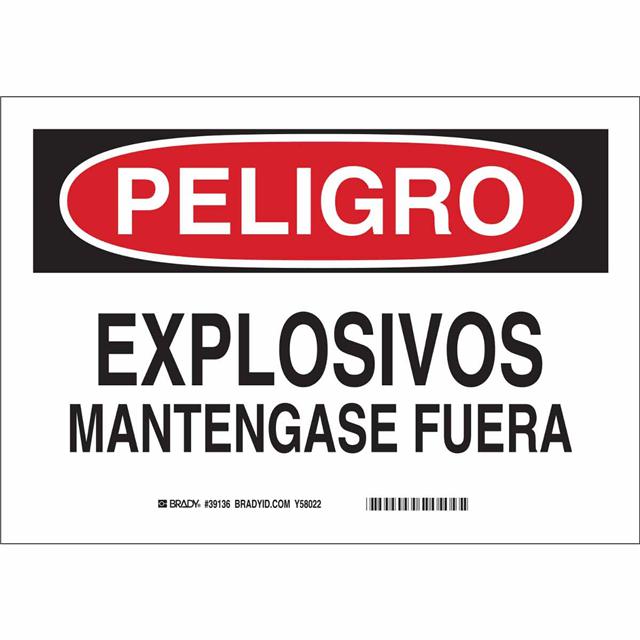 This is manufactured by Brady Corporation. The manufacturer part number is 39136. Label with a size of 14.00" l x 10.00" w (355.6mm x 254.0mm). The product is rohs3 compliant. It is assigned with possible HTSUS value of 3926.90.9985. It is shipped in bulk package . It has a classic black and red legend, white background colour. The product brady®, is a highly preferred choice for users. The product is made from highly stable and reliable polyester. In addition, it is reach unaffected. Its typical moisture sensitivity level is not applicable. A bespoke label is a peligro. explosivos mantengase fuera label. The product is suitable for use with danger. It has a long 4 weeks standard lead time. The product is designated with the ear99 code number.