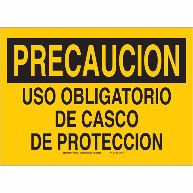 This is manufactured by Brady Corporation. The manufacturer part number is 39149. Label with a size of 14.00" l x 10.00" w (355.6mm x 254.0mm). The product is rohs3 compliant. It is assigned with possible HTSUS value of 3926.90.9985. It is shipped in bulk package . It has a classic black legend, yellow background colour. The product brady®, is a highly preferred choice for users. The product is made from highly stable and reliable polyester. In addition, it is reach unaffected. Its typical moisture sensitivity level is not applicable. A bespoke label is a precaucion. uso obligatorio de casco de proteccion label. The product is suitable for use with caution. It has a long 4 weeks standard lead time. The product is designated with the ear99 code number.