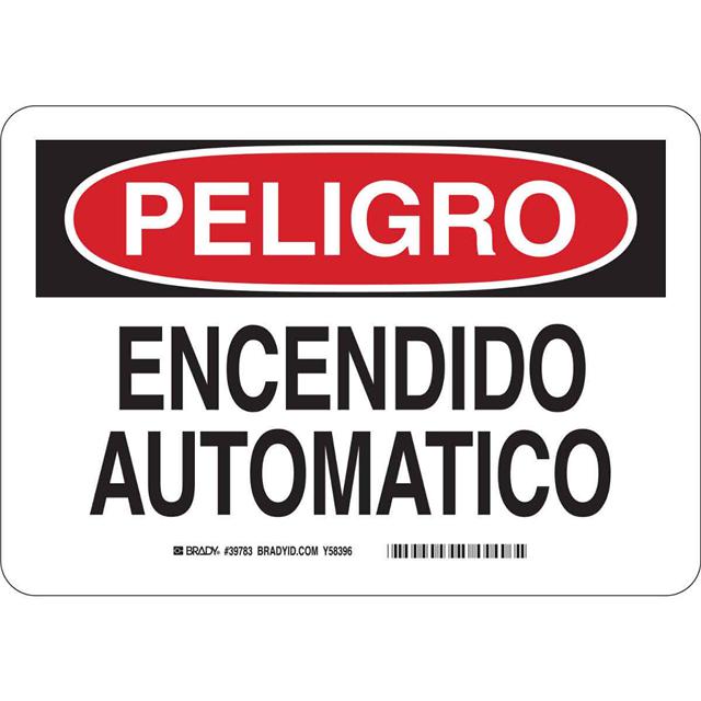 This is manufactured by Brady Corporation. The manufacturer part number is 39783. Label with a size of 10.00" l x 7.00" w (254.0mm x 177.8mm). The product is rohs3 compliant. It is assigned with possible HTSUS value of 3926.90.9985. It is shipped in bulk package . It has a classic black and red legend, white background colour. The product brady®, is a highly preferred choice for users. The product is made from highly stable and reliable fiberglass. In addition, it is reach unaffected. Its typical moisture sensitivity level is not applicable. A bespoke label is a peligro. encendido automatico label. The product is suitable for use with danger. The product is designated with the ear99 code number.