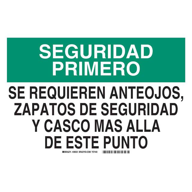 This is manufactured by Brady Corporation. The manufacturer part number is 39905. Label with a size of 10.00" l x 7.00" w (254.0mm x 177.8mm). The product is rohs3 compliant. It is assigned with possible HTSUS value of 3926.90.9985. It is shipped in bulk package . It has a classic black and green legend, white background colour. The product brady®, is a highly preferred choice for users. The product is made from highly stable and reliable fiberglass. In addition, it is reach unaffected. Its typical moisture sensitivity level is not applicable. A bespoke label is a seguridad primero se requieren antejos zapatos de seguridad y casco mas alla de este punto label. The product is suitable for use with warning. The product is designated with the ear99 code number.