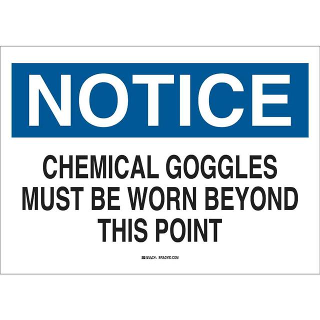This is manufactured by Brady Corporation. The manufacturer part number is 41188. Label with a size of 10.00" l x 7.00" w (254.0mm x 177.8mm). The product is rohs3 compliant. It is assigned with possible HTSUS value of 8310.00.0000. It is shipped in bulk package . It has a classic black and blue legend, white background colour. The product brady®, is a highly preferred choice for users. The product is made from highly stable and reliable aluminum. In addition, it is reach unaffected. Its typical moisture sensitivity level is not applicable. A bespoke label is a notice. chemical goggles must be worn beyond this point label. The product is suitable for use with notice. It has a long 4 weeks standard lead time. The product is designated with the ear99 code number.