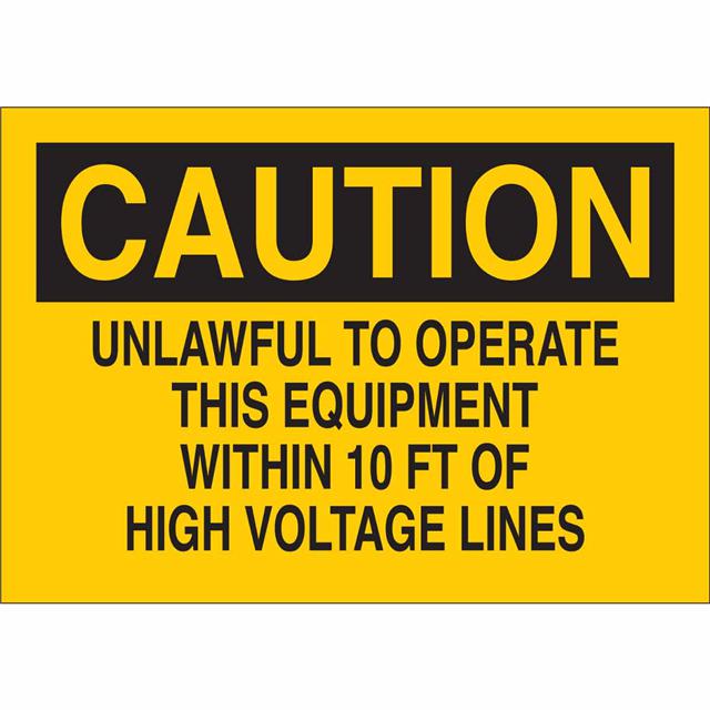 This is manufactured by Brady Corporation. The manufacturer part number is 43095. Label with a size of 10.00" l x 7.00" w (254.0mm x 177.8mm). The product is rohs3 compliant. It is assigned with possible HTSUS value of 8310.00.0000. It is shipped in bulk package . It has a classic black legend, yellow background colour. The product brady®, is a highly preferred choice for users. The product is made from highly stable and reliable aluminum. In addition, it is reach unaffected. Its typical moisture sensitivity level is not applicable. A bespoke label is a caution. unlawful to operate this equipment within 10 ft of high voltage lines label. The product is suitable for use with caution. It has a long 4 weeks standard lead time. The product is designated with the ear99 code number.