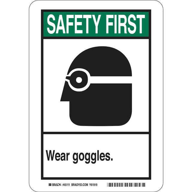 This is manufactured by Brady Corporation. The manufacturer part number is 45112. Label with a size of 14.00" l x 10.00" w (355.6mm x 254.0mm). The product is rohs3 compliant. It is assigned with possible HTSUS value of 3926.90.9989. It has a classic black and green legend, white background colour. The product brady®, is a highly preferred choice for users. The product is made from highly stable and reliable polyester. In addition, it is reach unaffected. Its typical moisture sensitivity level is not applicable. In addition, bulk is the available packaging type of the product. A bespoke label is a safety first. wear goggles label. The product is suitable for use with safety. It has a long 4 weeks standard lead time. The brady corporation's product offers user-desired applications. The product is designated with the ear99 code number.