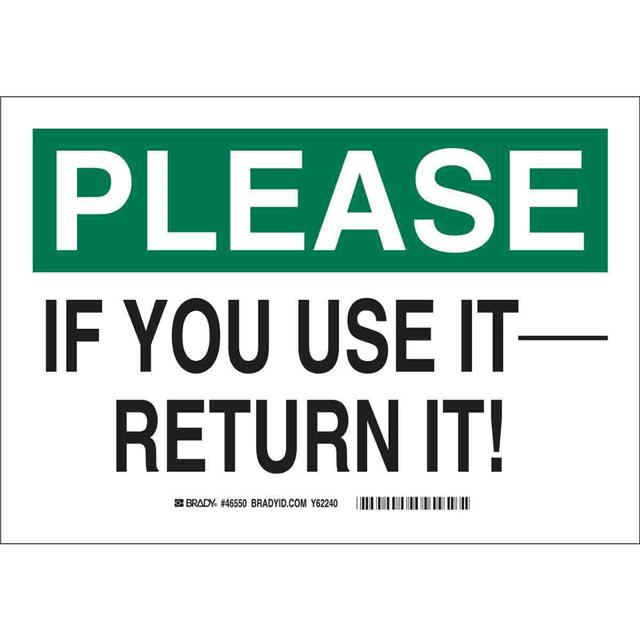 This is manufactured by Brady Corporation. The manufacturer part number is 46550. Label with a size of 10.00" l x 7.00" w (254.0mm x 177.8mm). The product is rohs3 compliant. It is assigned with possible HTSUS value of 8310.00.0000. It is shipped in bulk package . It has a classic black and green legend, white background colour. The product brady®, is a highly preferred choice for users. The product is made from highly stable and reliable aluminum. In addition, it is reach unaffected. Its typical moisture sensitivity level is not applicable. A bespoke label is a please. if you use it- return it label. The product is suitable for use with warning. It has a long 4 weeks standard lead time. The product is designated with the ear99 code number.