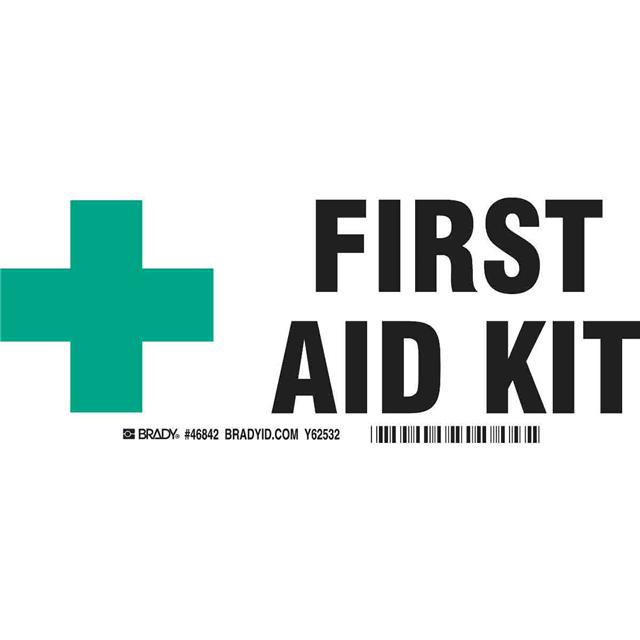 This is manufactured by Brady Corporation. The manufacturer part number is 46842. Label with a size of 10.00" l x 3.50" w (254.0mm x 88.9mm). The product is rohs3 compliant. It is assigned with possible HTSUS value of 8310.00.0000. It is shipped in bulk package . It has a classic black and green legend, white background colour. The product brady®, is a highly preferred choice for users. The product is made from highly stable and reliable aluminum. In addition, it is reach unaffected. Its typical moisture sensitivity level is not applicable. A bespoke label is a first aid kit label. The product is suitable for use with warning. It has a long 4 weeks standard lead time. The product is designated with the ear99 code number.