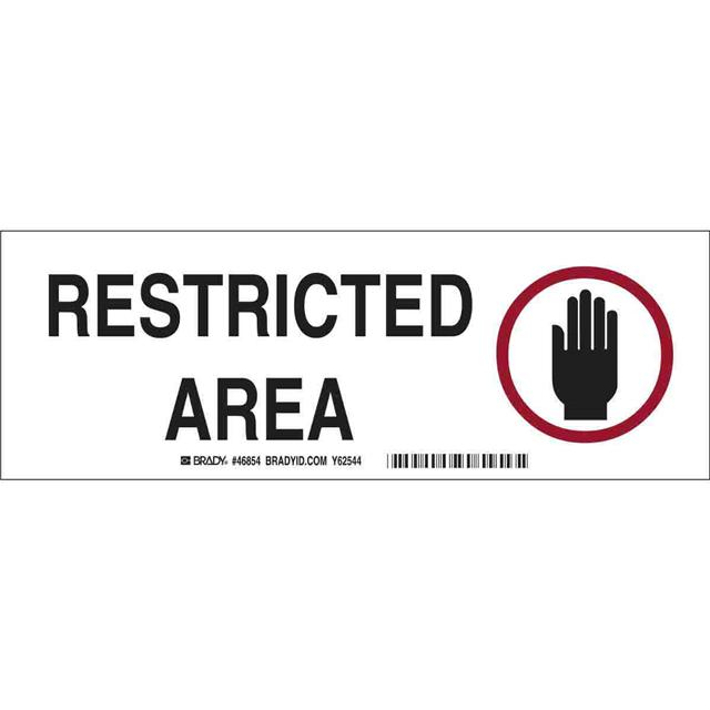 This is manufactured by Brady Corporation. The manufacturer part number is 46854. Label with a size of 10.00" l x 3.50" w (254.0mm x 88.9mm). The product is rohs3 compliant. It is assigned with possible HTSUS value of 8310.00.0000. It is shipped in bulk package . It has a classic black and red legend, white background colour. The product brady®, is a highly preferred choice for users. The product is made from highly stable and reliable aluminum. In addition, it is reach unaffected. Its typical moisture sensitivity level is not applicable. A bespoke label is a restricted area label. The product is suitable for use with warning. It has a long 4 weeks standard lead time. The product is designated with the ear99 code number.