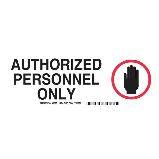 This is manufactured by Brady Corporation. The manufacturer part number is 46871. Label with a size of 10.00" l x 3.50" w (254.0mm x 88.9mm). The product is rohs3 compliant. It is assigned with possible HTSUS value of 8310.00.0000. It is shipped in bulk package . It has a classic black and red legend, white background colour. The product brady®, is a highly preferred choice for users. The product is made from highly stable and reliable aluminum. In addition, it is reach unaffected. Its typical moisture sensitivity level is not applicable. A bespoke label is a authorized personnel only label. The product is suitable for use with warning. It has a long 4 weeks standard lead time. The product is designated with the ear99 code number.