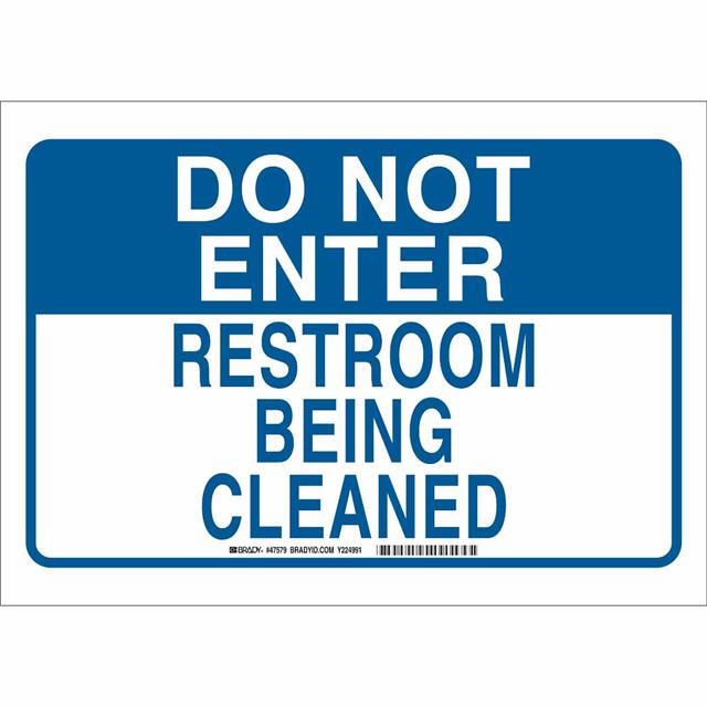 This is manufactured by Brady Corporation. The manufacturer part number is 47579. Label with a size of 14.00" l x 10.00" w (355.6mm x 254.0mm). The product is rohs3 compliant. It is assigned with possible HTSUS value of 3926.90.9989. It has a classic blue legend, white background colour. The product brady®, is a highly preferred choice for users. The product is made from highly stable and reliable polyester. In addition, it is reach unaffected. Its typical moisture sensitivity level is not applicable. In addition, bulk is the available packaging type of the product. A bespoke label is a donotenter. restroom being cleaned label. The product is suitable for use with warning. It has a long 4 weeks standard lead time. The brady corporation's product offers user-desired applications. The product is designated with the ear99 code number.