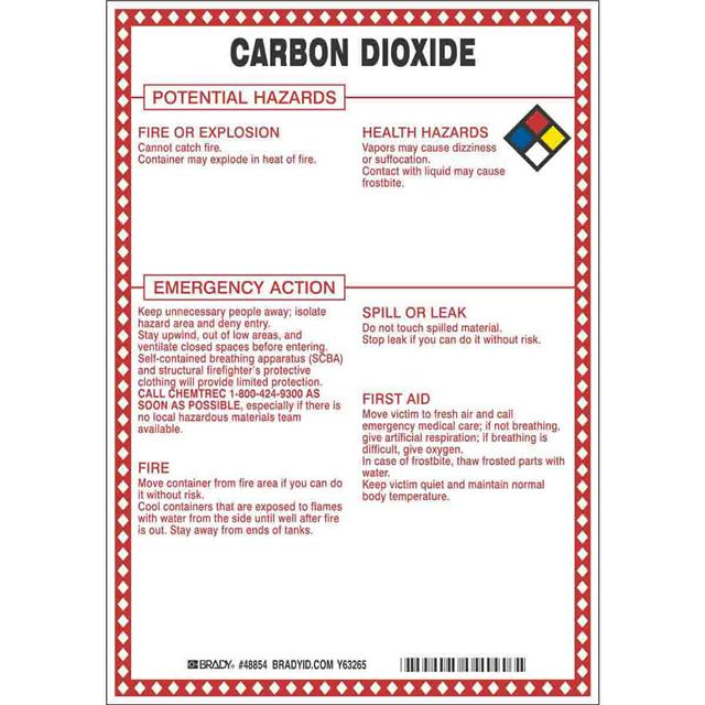 This is manufactured by Brady Corporation. The manufacturer part number is 48854. Label with a size of 10.00" l x 7.00" w (254.0mm x 177.8mm). The product is rohs3 compliant. It is assigned with possible HTSUS value of 3926.90.9989. It has a classic black, blue, red and yellow legend, white background colour. The product brady®, is a highly preferred choice for users. The product is made from highly stable and reliable fiberglass. In addition, it is reach unaffected. Its typical moisture sensitivity level is not applicable. In addition, bulk is the available packaging type of the product. A bespoke label is a carbon dioxide potential hazards label. The product is suitable for use with warning. It has a long 4 weeks standard lead time. The brady corporation's product offers user-desired applications. The product is designated with the ear99 code number.