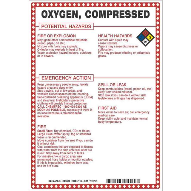 This is manufactured by Brady Corporation. The manufacturer part number is 48884. Label with a size of 10.00" l x 7.00" w (254.0mm x 177.8mm). The product is rohs3 compliant. It is assigned with possible HTSUS value of 3926.90.9989. It has a classic black, blue, red and yellow legend, white background colour. The product brady®, is a highly preferred choice for users. The product is made from highly stable and reliable fiberglass. In addition, it is reach unaffected. Its typical moisture sensitivity level is not applicable. In addition, bulk is the available packaging type of the product. A bespoke label is a oxygen, compressed potential hazards label. The product is suitable for use with warning. It has a long 4 weeks standard lead time. The brady corporation's product offers user-desired applications. The product is designated with the ear99 code number.