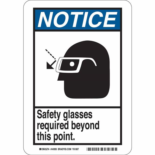 This is manufactured by Brady Corporation. The manufacturer part number is 48987. Label with a size of 10.00" l x 7.00" w (254.0mm x 177.8mm). The product is rohs3 compliant. It is assigned with possible HTSUS value of 8310.00.0000. It is shipped in bulk package . It has a classic black and blue legend, white background colour. The product brady®, is a highly preferred choice for users. The product is made from highly stable and reliable aluminum. In addition, it is reach unaffected. Its typical moisture sensitivity level is not applicable. A bespoke label is a notice. safety glasses required beyond this point label. The product is suitable for use with notice. It has a long 4 weeks standard lead time. The product is designated with the ear99 code number.