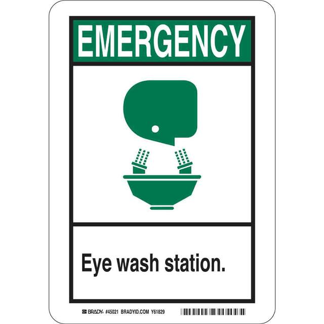 This is manufactured by Brady Corporation. The manufacturer part number is 49009. Label with a size of 10.00" l x 7.00" w (254.0mm x 177.8mm). The product is rohs3 compliant. It is assigned with possible HTSUS value of 8310.00.0000. It is shipped in bulk package . It has a classic black and green legend, white background colour. The product brady®, is a highly preferred choice for users. The product is made from highly stable and reliable aluminum. In addition, it is reach unaffected. Its typical moisture sensitivity level is not applicable. A bespoke label is a emergency. eye wash station label. The product is suitable for use with emergency. It has a long 4 weeks standard lead time. The product is designated with the ear99 code number.