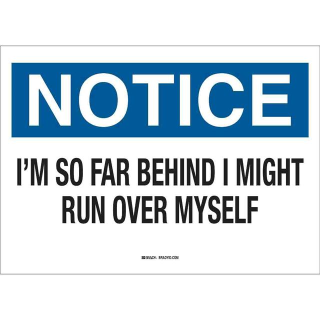 This is manufactured by Brady Corporation. The manufacturer part number is 49035. Label with a size of 10.00" l x 7.00" w (254.0mm x 177.8mm). The product is rohs3 compliant. It is assigned with possible HTSUS value of 3926.90.9989. It has a classic black and blue legend, white background colour. The product brady®, is a highly preferred choice for users. The product is made from highly stable and reliable polyester. In addition, it is reach unaffected. Its typical moisture sensitivity level is not applicable. In addition, bulk is the available packaging type of the product. A bespoke label is a notice. i'm so far behind i might run over myself label. The product is suitable for use with notice. The brady corporation's product offers user-desired applications. The product is designated with the ear99 code number.