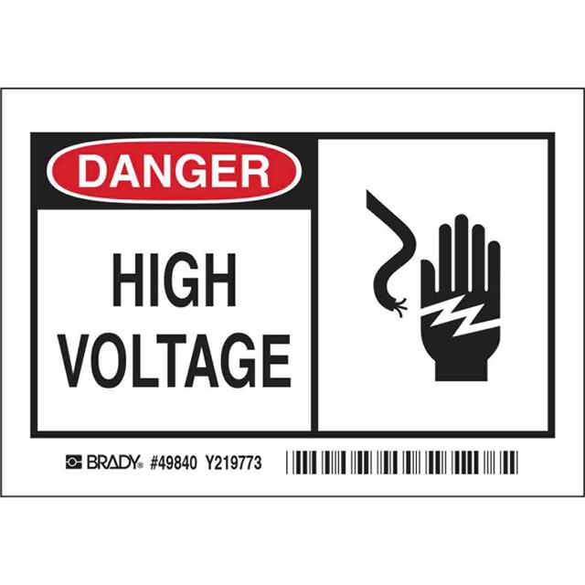This is manufactured by Brady Corporation. The manufacturer part number is 49840. Label with a size of 5.00" l x 3.50" w (127.0mm x 88.9mm). The product is rohs3 compliant. It is assigned with possible HTSUS value of 3926.90.9989. It has a classic black and red legend, white background colour. The product brady®, is a highly preferred choice for users. The product is made from highly stable and reliable polyester. In addition, it is reach unaffected. Its typical moisture sensitivity level is not applicable. In addition, bulk is the available packaging type of the product. A bespoke label is a danger. high voltage label. The product is suitable for use with danger. It has a long 4 weeks standard lead time. The brady corporation's product offers user-desired applications. The product is designated with the ear99 code number.