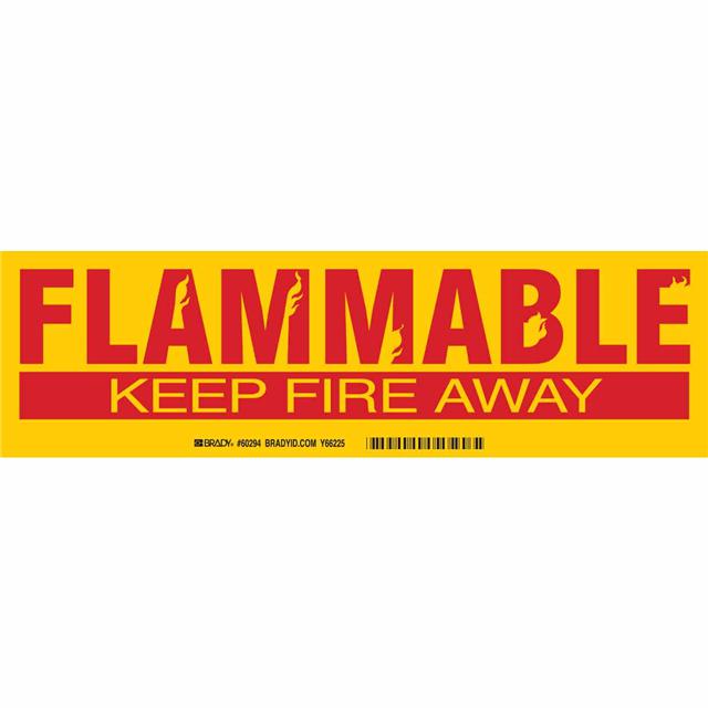 This is manufactured by Brady Corporation. The manufacturer part number is 60294. Label with a size of 12.00" l x 3.50" w (304.8mm x 88.9mm). The product is not applicable. It is assigned with possible HTSUS value of 3926.90.9985. It is shipped in bulk package . It has a classic red legend, yellow background colour. The product brady®, is a highly preferred choice for users. The product is made from highly stable and reliable polyester. In addition, it is reach unaffected. Its typical moisture sensitivity level is not applicable. A bespoke label is a flammable. keep fire away label. The product is suitable for use with fire. It has a long 4 weeks standard lead time. The product is designated with the ear99 code number.