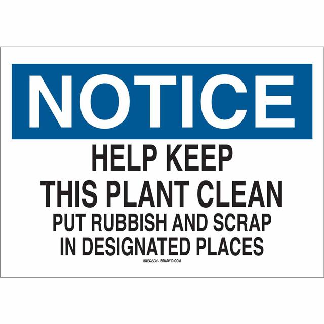 This is manufactured by Brady Corporation. The manufacturer part number is 69013. Label with a size of 14.00" l x 10.00" w (355.6mm x 254.0mm). The product is rohs3 compliant. It is assigned with possible HTSUS value of 3926.90.9985. It is shipped in bulk package . It has a classic black and blue legend, white background colour. The product brady®, is a highly preferred choice for users. The product is made from highly stable and reliable fiberglass. In addition, it is reach unaffected. Its typical moisture sensitivity level is not applicable. A bespoke label is a notice. help keep this plant clean put rubbish and scrap in designated places label. The product is suitable for use with notice. It has a long 4 weeks standard lead time. The product is designated with the ear99 code number.