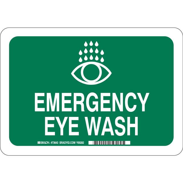 This is manufactured by Brady Corporation. The manufacturer part number is 73643. Label with a size of 10.00" l x 7.00" w (254.0mm x 177.8mm). The product is rohs3 compliant. It is assigned with possible HTSUS value of 3926.90.9985. It is shipped in bulk package . It has a classic white legend, green background colour. The product brady®, is a highly preferred choice for users. The product is made from highly stable and reliable fiberglass. In addition, it is reach unaffected. Its typical moisture sensitivity level is not applicable. A bespoke label is a emergency eye wash label. The product is suitable for use with emergency. It has a long 4 weeks standard lead time. The product is designated with the ear99 code number.