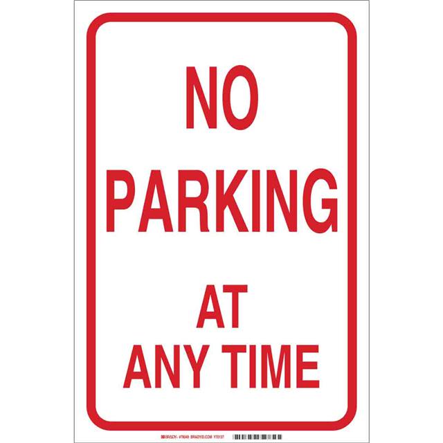This is manufactured by Brady Corporation. The manufacturer part number is 78049. Label with a size of 18.00" l x 12.00" w (457.2mm x 304.8mm). The product is rohs3 compliant. It is assigned with possible HTSUS value of 3926.90.9985. It is shipped in bulk package . It has a classic red legend, white background colour. The product brady®, is a highly preferred choice for users. The product is made from highly stable and reliable polypropylene. In addition, it is reach unaffected. Its typical moisture sensitivity level is not applicable. A bespoke label is a no parking at any time label. The product is suitable for use with warning. It has a long 4 weeks standard lead time. The product is designated with the ear99 code number.