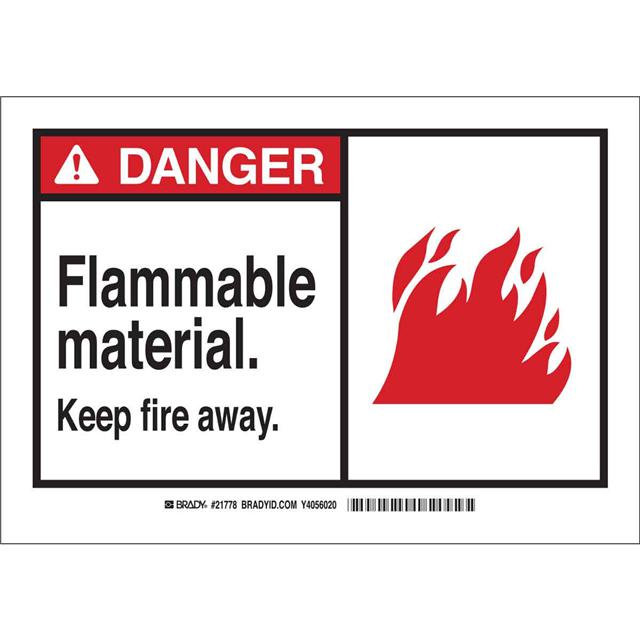 This is manufactured by Brady Corporation. The manufacturer part number is 83731. Label with a size of 10.00" l x 7.00" w (254.0mm x 177.8mm). The product is rohs3 compliant. It is assigned with possible HTSUS value of 3926.90.9985. It is shipped in bulk package . It has a classic black and red legend, white background colour. The product brady®, is a highly preferred choice for users. The product is made from highly stable and reliable polyester. In addition, it is reach unaffected. Its typical moisture sensitivity level is not applicable. A bespoke label is a danger. flammable material. keep fire away. label. The product is suitable for use with danger. It has a long 4 weeks standard lead time. The product is designated with the ear99 code number.