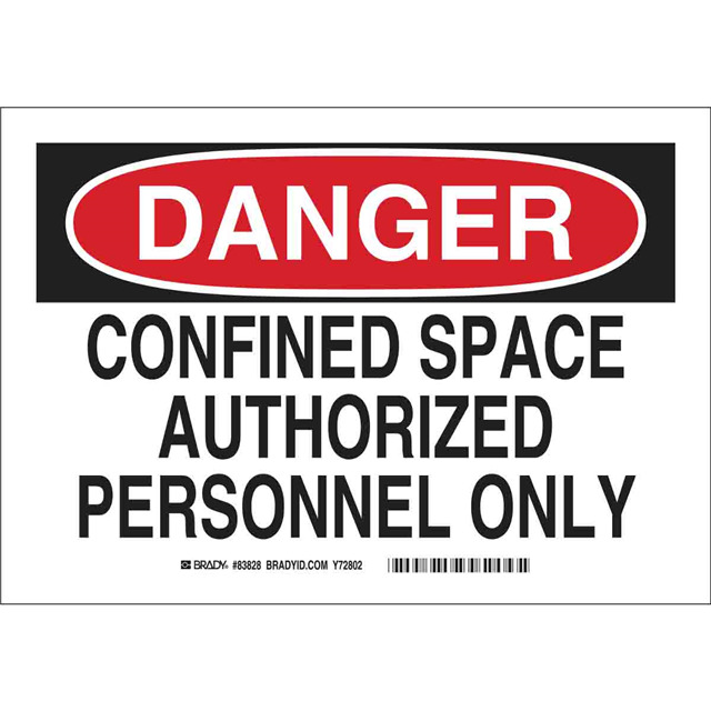 This is manufactured by Brady Corporation. The manufacturer part number is 83828. Label with a size of 10.00" l x 7.00" w (254.0mm x 177.8mm). The product is rohs3 compliant. It is assigned with possible HTSUS value of 3926.90.9989. It has a classic black and red legend, white background colour. The product brady®, is a highly preferred choice for users. The product is made from highly stable and reliable polyester. In addition, it is reach unaffected. Its typical moisture sensitivity level is not applicable. In addition, bulk is the available packaging type of the product. A bespoke label is a danger. confined space authorized personnel only label. The product is suitable for use with danger. It has a long 4 weeks standard lead time. The brady corporation's product offers user-desired applications. The product is designated with the ear99 code number.