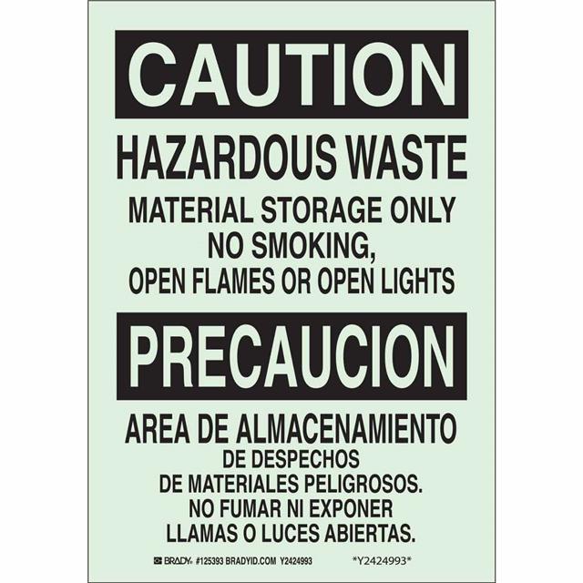 This is manufactured by Brady Corporation. The manufacturer part number is 90514. Label with a size of 14.00" l x 10.00" w (355.6mm x 254.0mm). The product is not applicable. It is assigned with possible HTSUS value of 3926.90.9985. It is shipped in bulk package . It has a classic black legend, glow background colour. The product brady®, is a highly preferred choice for users. The product is made from highly stable and reliable polyester. In addition, it is reach unaffected. Its typical moisture sensitivity level is not applicable. A bespoke label is a caution/precaucion. hazardous waste material storage only no smoking, open flames or open lights label. The product is suitable for use with caution. It has a long 4 weeks standard lead time. The product is designated with the ear99 code number.