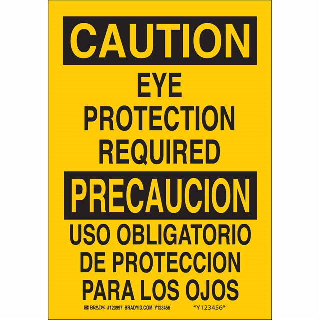 This is manufactured by Brady Corporation. The manufacturer part number is 90799. Label with a size of 14.00" l x 10.00" w (355.6mm x 254.0mm). The product is not applicable. It is assigned with possible HTSUS value of 3926.90.9989. It has a classic black legend, yellow background colour. The product brady®, is a highly preferred choice for users. The product is made from highly stable and reliable polyester. In addition, it is reach unaffected. Its typical moisture sensitivity level is not applicable. In addition, bulk is the available packaging type of the product. A bespoke label is a caution/precaucion. eye protection required/uso obligatorio de proteccion para los ojos label. The product is suitable for use with caution. It has a long 4 weeks standard lead time. The brady corporation's product offers user-desired applications. The product is designated with the ear99 code number.