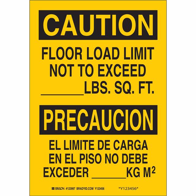 This is manufactured by Brady Corporation. The manufacturer part number is 90816. Label with a size of 14.00" l x 10.00" w (355.6mm x 254.0mm). The product is not applicable. It is assigned with possible HTSUS value of 3926.90.9985. It is shipped in bulk package . It has a classic black legend, yellow background colour. The product brady®, is a highly preferred choice for users. The product is made from highly stable and reliable polyester. In addition, it is reach unaffected. Its typical moisture sensitivity level is not applicable. A bespoke label is a caution/precaucion. floor load limit not to exceed. lbs. sq. ft./el limite de carga en el piso no debe exceder. kg m2 label. The product is suitable for use with caution. It has a long 4 weeks standard lead time. The product is designated with the ear99 code number.