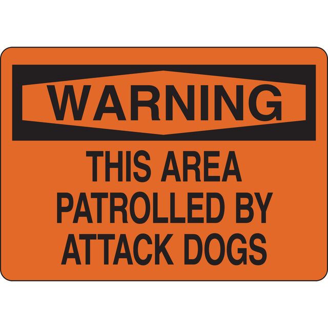This is manufactured by Brady Corporation. The manufacturer part number is 95427. Label with a size of 14.00" l x 10.00" w (355.6mm x 254.0mm). The product is rohs3 compliant. It is assigned with possible HTSUS value of 3926.90.9989. It has a classic black legend, orange background colour. The product brady®, is a highly preferred choice for users. The product is made from highly stable and reliable polyester. In addition, it is reach unaffected. Its typical moisture sensitivity level is not applicable. In addition, bulk is the available packaging type of the product. A bespoke label is a warning. this area patrolled by attack dogs label. The product is suitable for use with warning. It has a long 4 weeks standard lead time. The brady corporation's product offers user-desired applications. The product is designated with the ear99 code number.