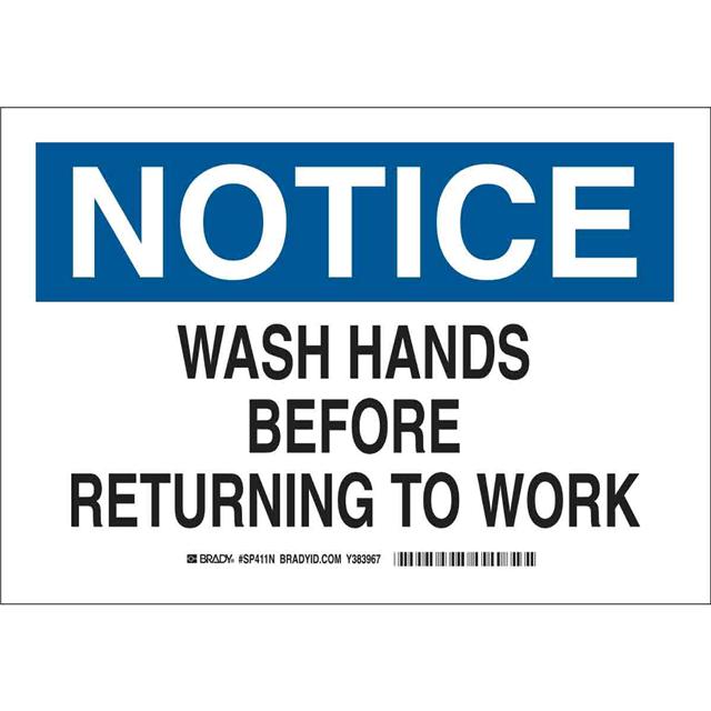 This is manufactured by Brady Corporation. The manufacturer part number is SP411N. Label with a size of 14.00" l x 10.00" w (355.6mm x 254.0mm). The product is rohs3 compliant. It is assigned with possible HTSUS value of 3926.90.9985. It is shipped in bulk package . It has a classic black and blue legend, white background colour. The product brady®, is a highly preferred choice for users. The product is made from highly stable and reliable polyester. In addition, it is reach unaffected. Its typical moisture sensitivity level is not applicable. A bespoke label is a notice. wash hands... label. The product is suitable for use with notice. It has a long 4 weeks standard lead time. The product is designated with the ear99 code number.