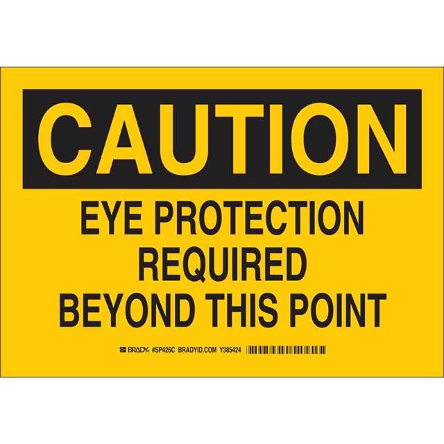 This is manufactured by Brady Corporation. The manufacturer part number is SP426C. Label with a size of 14.00" l x 10.00" w (355.6mm x 254.0mm). The product is rohs3 compliant. It is assigned with possible HTSUS value of 3926.90.9985. It is shipped in bulk package . It has a classic black legend, yellow background colour. The product brady®, is a highly preferred choice for users. The product is made from highly stable and reliable polyester. In addition, it is reach unaffected. Its typical moisture sensitivity level is not applicable. A bespoke label is a caution. eye protection required beyond this point label. The product is suitable for use with caution. It has a long 4 weeks standard lead time. The product is designated with the ear99 code number.