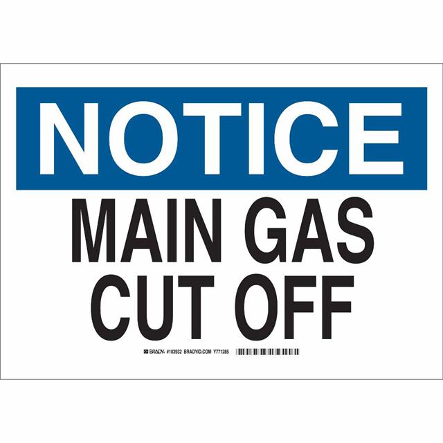 This is manufactured by Brady Corporation. The manufacturer part number is 103932. Label with a size of 14.00" l x 10.00" w (355.6mm x 254.0mm). The product is rohs3 compliant. It is assigned with possible HTSUS value of 3926.90.9989. It has a classic black and blue legend, white background colour. The product brady®, is a highly preferred choice for users. The product is made from highly stable and reliable polyester. In addition, it is reach unaffected. Its typical moisture sensitivity level is not applicable. In addition, bulk is the available packaging type of the product. A bespoke label is a notice. main gas cut off label. The product is suitable for use with notice. The brady corporation's product offers user-desired applications. The product is designated with the ear99 code number.