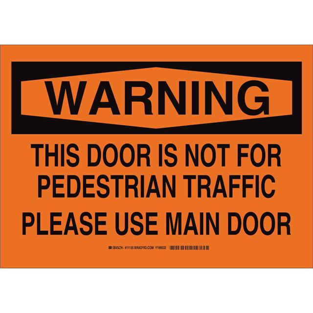 This is manufactured by Brady Corporation. The manufacturer part number is 11135. Label with a size of 14.00" l x 10.00" w (355.6mm x 254.0mm). The product is not applicable. It is assigned with possible HTSUS value of 3926.90.9989. It has a classic black legend, orange background colour. The product brady®, is a highly preferred choice for users. The product is made from highly stable and reliable polyester. In addition, it is reach unaffected. Its typical moisture sensitivity level is not applicable. In addition, bulk is the available packaging type of the product. A bespoke label is a this door is not for pedestrian traffic please use main door label. The product is suitable for use with warning. It has a long 4 weeks standard lead time. The brady corporation's product offers user-desired applications. The product is designated with the ear99 code number.