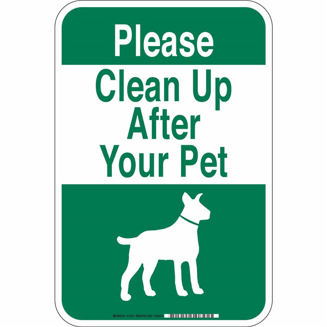 This is manufactured by Brady Corporation. The manufacturer part number is 115214. Label with a size of 18.00" l x 12.00" w (457.2mm x 304.8mm). The product is rohs3 compliant. It is assigned with possible HTSUS value of 8310.00.0000. It has a classic green legend, white background colour. The product brady®, is a highly preferred choice for users. The product is made from highly stable and reliable aluminum. In addition, it is reach unaffected. Its typical moisture sensitivity level is not applicable. In addition, bulk is the available packaging type of the product. A bespoke label is a please. clean up after your pet label. The product is suitable for use with warning. It has a long 4 weeks standard lead time. The brady corporation's product offers user-desired applications. The product is designated with the ear99 code number.