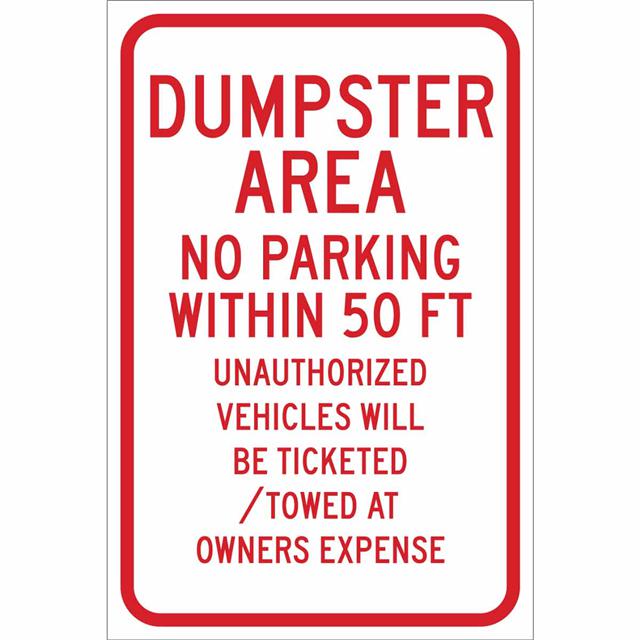 This is manufactured by Brady Corporation. The manufacturer part number is 115461. Label with a size of 18.00" l x 12.00" w (457.2mm x 304.8mm). The product is rohs3 compliant. It is assigned with possible HTSUS value of 8310.00.0000. It has a classic red legend, white background colour. The product brady®, is a highly preferred choice for users. The product is made from highly stable and reliable aluminum. In addition, it is reach unaffected. Its typical moisture sensitivity level is not applicable. In addition, bulk is the available packaging type of the product. A bespoke label is a dumpster area no parking within 50 ft unauthorized vehicles will be ticketed/towed at owners expense label. It has a long 4 weeks standard lead time. The brady corporation's product offers user-desired applications. The product is designated with the ear99 code number.