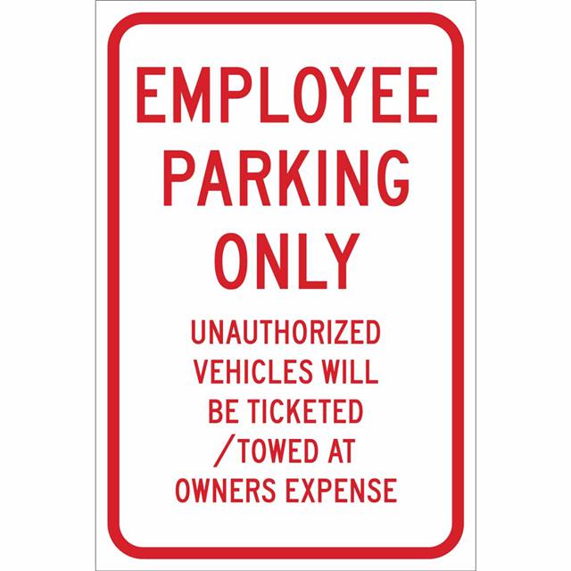 This is manufactured by Brady Corporation. The manufacturer part number is 115463. Label with a size of 18.00" l x 12.00" w (457.2mm x 304.8mm). The product is rohs3 compliant. It is assigned with possible HTSUS value of 8310.00.0000. It has a classic red legend, white background colour. The product brady®, is a highly preferred choice for users. The product is made from highly stable and reliable aluminum. In addition, it is reach unaffected. Its typical moisture sensitivity level is not applicable. In addition, bulk is the available packaging type of the product. A bespoke label is a employee parking only unauthorized vehicles will be ticketed/towed at owners expense label. It has a long 4 weeks standard lead time. The brady corporation's product offers user-desired applications. The product is designated with the ear99 code number.