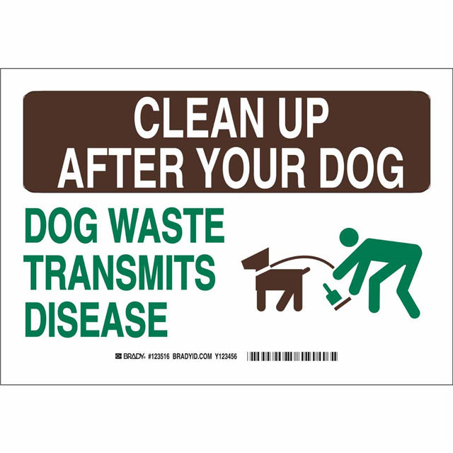 This is manufactured by Brady Corporation. The manufacturer part number is 123519. Label with a size of 14.00" l x 10.00" w (355.6mm x 254.0mm). The product is not applicable. It is assigned with possible HTSUS value of 3926.90.9989. It has a classic brown and green legend, white background colour. The product brady®, is a highly preferred choice for users. The product is made from highly stable and reliable polyester. In addition, it is reach unaffected. Its typical moisture sensitivity level is not applicable. In addition, bulk is the available packaging type of the product. A bespoke label is a dog waste transmits disease label. The product is suitable for use with notice. It has a long 4 weeks standard lead time. The brady corporation's product offers user-desired applications. The product is designated with the ear99 code number.