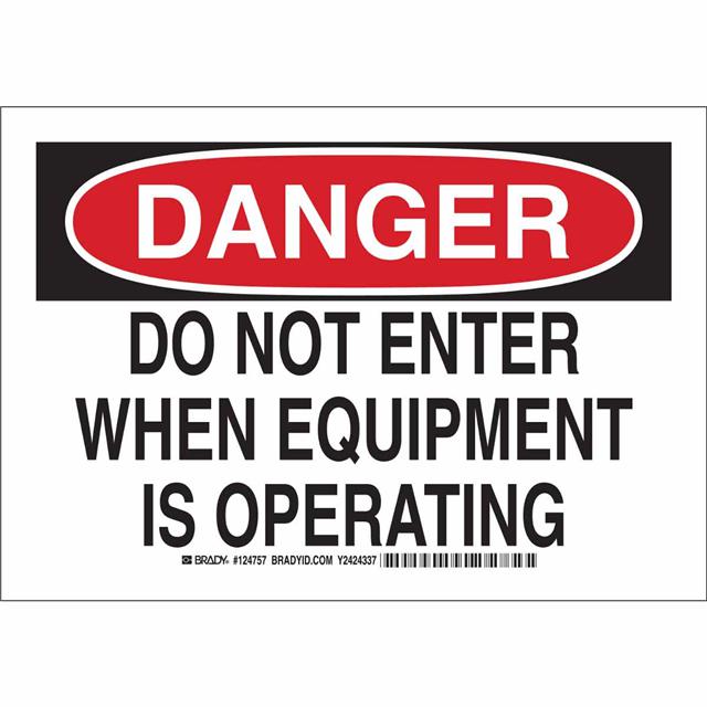 This is manufactured by Brady Corporation. The manufacturer part number is 124758. Label with a size of 14.00" l x 10.00" w (355.6mm x 254.0mm). The product is rohs3 compliant. It is assigned with possible HTSUS value of 8310.00.0000. It is shipped in bulk package . It has a classic black and red legend, white background colour. The product brady®, is a highly preferred choice for users. The product is made from highly stable and reliable aluminum. In addition, it is reach unaffected. Its typical moisture sensitivity level is not applicable. A bespoke label is a danger. do not enter when equipment is operating label. The product is suitable for use with warning. It has a long 4 weeks standard lead time. The product is designated with the ear99 code number.