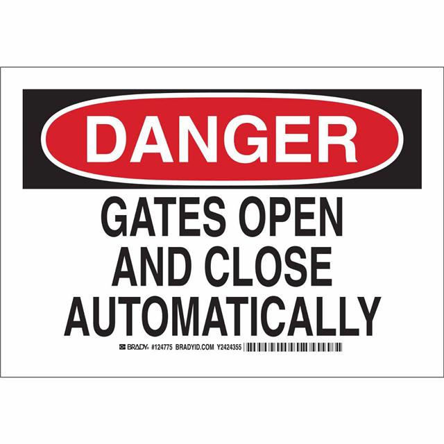 This is manufactured by Brady Corporation. The manufacturer part number is 124776. Label with a size of 14.00" l x 10.00" w (355.6mm x 254.0mm). The product is rohs3 compliant. It is assigned with possible HTSUS value of 8310.00.0000. It is shipped in bulk package . It has a classic black and red legend, white background colour. The product brady®, is a highly preferred choice for users. The product is made from highly stable and reliable aluminum. In addition, it is reach unaffected. Its typical moisture sensitivity level is not applicable. A bespoke label is a danger. gates open and close automatically label. The product is suitable for use with notice. It has a long 4 weeks standard lead time. The product is designated with the ear99 code number.