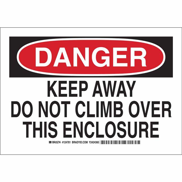 This is manufactured by Brady Corporation. The manufacturer part number is 124782. Label with a size of 14.00" l x 10.00" w (355.6mm x 254.0mm). The product is rohs3 compliant. It is assigned with possible HTSUS value of 8310.00.0000. It is shipped in bulk package . It has a classic black and red legend, white background colour. The product brady®, is a highly preferred choice for users. The product is made from highly stable and reliable aluminum. In addition, it is reach unaffected. Its typical moisture sensitivity level is not applicable. A bespoke label is a danger. keep away do not climb over this enclosure label. It has a long 4 weeks standard lead time. The product is designated with the ear99 code number.
