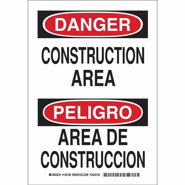 This is manufactured by Brady Corporation. The manufacturer part number is 125160. Label with a size of 14.00" l x 10.00" w (355.6mm x 254.0mm). The product is rohs3 compliant. It is assigned with possible HTSUS value of 8310.00.0000. It is shipped in bulk package . It has a classic black and red legend, white background colour. The product brady®, is a highly preferred choice for users. The product is made from highly stable and reliable aluminum. In addition, it is reach unaffected. Its typical moisture sensitivity level is not applicable. A bespoke label is a danger. construction area/area de construccion label. The product is suitable for use with danger. It has a long 4 weeks standard lead time. The product is designated with the ear99 code number.