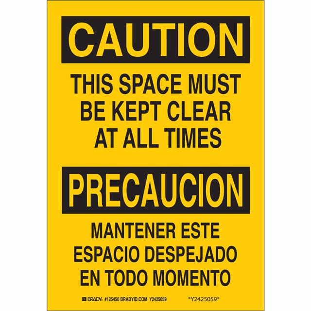 This is manufactured by Brady Corporation. The manufacturer part number is 125460. Label with a size of 14.00" l x 10.00" w (355.6mm x 254.0mm). The product is not applicable. It is assigned with possible HTSUS value of 8310.00.0000. It is shipped in bulk package . It has a classic black legend, yellow background colour. The product brady®, is a highly preferred choice for users. The product is made from highly stable and reliable aluminum. In addition, it is reach affected. Its typical moisture sensitivity level is not applicable. A bespoke label is a caution/precaucionthis space must be kept clear at all times/mantener este espacio despejado en todo momento label. The product is suitable for use with notice. It has a long 4 weeks standard lead time. The product is designated with the ear99 code number.