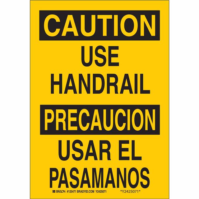 This is manufactured by Brady Corporation. The manufacturer part number is 125472. Label with a size of 14.00" l x 10.00" w (355.6mm x 254.0mm). The product is not applicable. It is assigned with possible HTSUS value of 8310.00.0000. It is shipped in bulk package . It has a classic black legend, yellow background colour. The product brady®, is a highly preferred choice for users. The product is made from highly stable and reliable aluminum. In addition, it is reach affected. Its typical moisture sensitivity level is not applicable. A bespoke label is a caution/precaucion. use handrail/usar el pasamanos label. The product is suitable for use with caution. It has a long 4 weeks standard lead time. The product is designated with the ear99 code number.