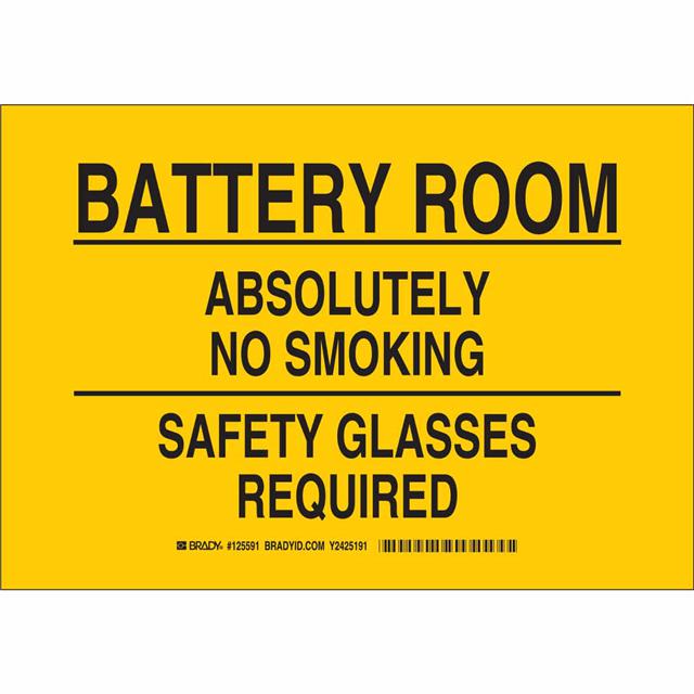 This is manufactured by Brady Corporation. The manufacturer part number is 125592. Label with a size of 14.00" l x 10.00" w (355.6mm x 254.0mm). The product is not applicable. It is assigned with possible HTSUS value of 8310.00.0000. It is shipped in bulk package . It has a classic black legend, yellow background colour. The product brady®, is a highly preferred choice for users. The product is made from highly stable and reliable aluminum. In addition, it is reach affected. Its typical moisture sensitivity level is not applicable. A bespoke label is a battery room absolutely no smoking safety glasses required label. It has a long 4 weeks standard lead time. The product is designated with the ear99 code number.