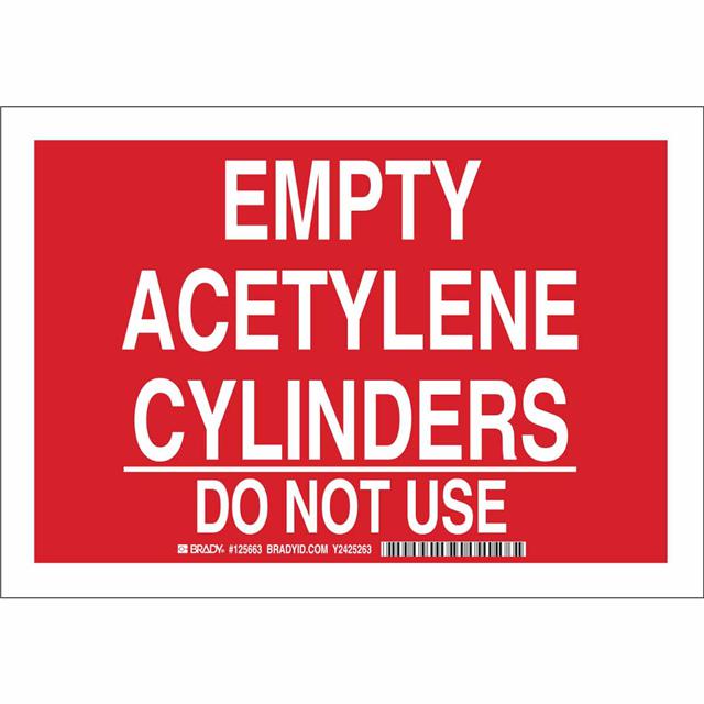 This is manufactured by Brady Corporation. The manufacturer part number is 125666. Label with a size of 14.00" l x 10.00" w (355.6mm x 254.0mm). The product is rohs3 compliant. It is assigned with possible HTSUS value of 3926.90.9989. It has a classic white legend, red background colour. The product brady®, is a highly preferred choice for users. The product is made from highly stable and reliable polyester. In addition, it is reach unaffected. Its typical moisture sensitivity level is not applicable. In addition, bulk is the available packaging type of the product. A bespoke label is a empty acetylene cylinders do not use label. The product is suitable for use with warning. It has a long 4 weeks standard lead time. The brady corporation's product offers user-desired applications. The product is designated with the ear99 code number.