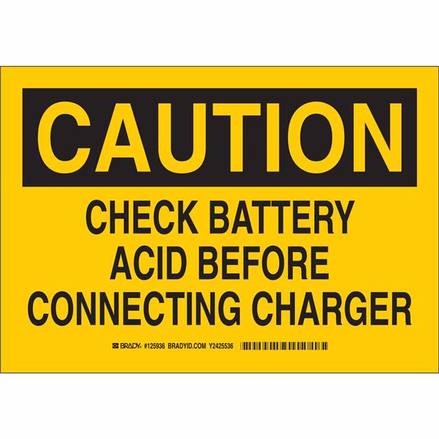 This is manufactured by Brady Corporation. The manufacturer part number is 125937. Label with a size of 14.00" l x 10.00" w (355.6mm x 254.0mm). The product is not applicable. It is assigned with possible HTSUS value of 8310.00.0000. It is shipped in bulk package . It has a classic black legend, yellow background colour. The product brady®, is a highly preferred choice for users. The product is made from highly stable and reliable aluminum. In addition, it is reach affected. Its typical moisture sensitivity level is not applicable. A bespoke label is a caution. check battery acid before connecting charger label. The product is suitable for use with caution. The product is designated with the ear99 code number.