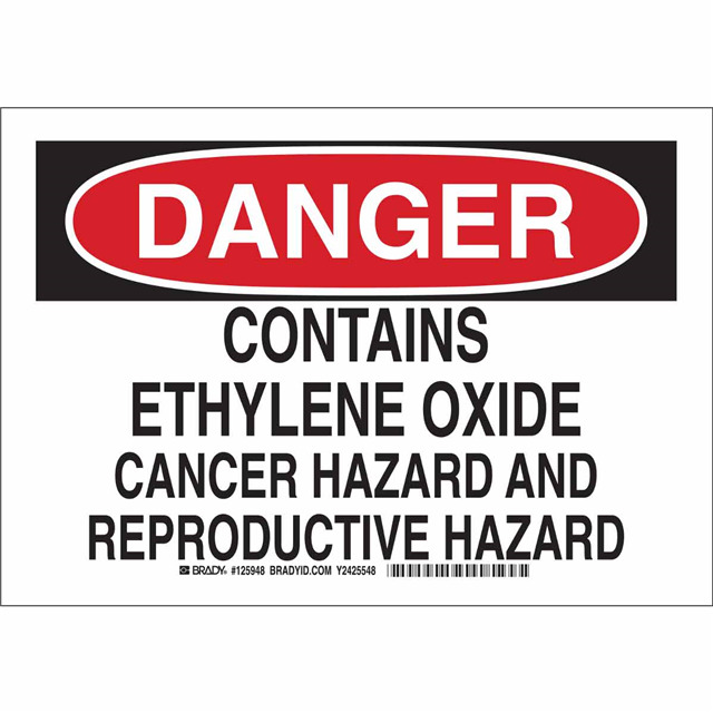 This is manufactured by Brady Corporation. The manufacturer part number is 125949. Label with a size of 14.00" l x 10.00" w (355.6mm x 254.0mm). The product is rohs3 compliant. It is assigned with possible HTSUS value of 8310.00.0000. It has a classic black and red legend, white background colour. The product brady®, is a highly preferred choice for users. The product is made from highly stable and reliable aluminum. In addition, it is reach unaffected. Its typical moisture sensitivity level is not applicable. In addition, bulk is the available packaging type of the product. A bespoke label is a danger. contains ethylene oxide cancer hazard and reproductive hazard label. The product is suitable for use with danger. It has a long 4 weeks standard lead time. The brady corporation's product offers user-desired applications. The product is designated with the ear99 code number.