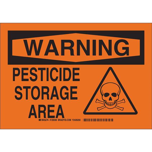 This is manufactured by Brady Corporation. The manufacturer part number is 126597. Label with a size of 14.00" l x 10.00" w (355.6mm x 254.0mm). The product is rohs3 compliant. It is assigned with possible HTSUS value of 8310.00.0000. It has a classic black legend, orange background colour. The product brady®, is a highly preferred choice for users. The product is made from highly stable and reliable aluminum. In addition, it is reach unaffected. Its typical moisture sensitivity level is not applicable. In addition, bulk is the available packaging type of the product. A bespoke label is a warning. pesticide storage area label. It has a long 4 weeks standard lead time. The brady corporation's product offers user-desired applications. The product is designated with the ear99 code number.