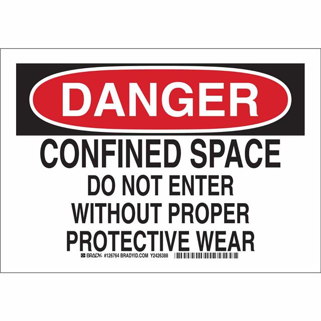This is manufactured by Brady Corporation. The manufacturer part number is 126765. Label with a size of 14.00" l x 10.00" w (355.6mm x 254.0mm). The product is rohs3 compliant. It is assigned with possible HTSUS value of 8310.00.0000. It is shipped in bulk package . It has a classic black and red legend, white background colour. The product brady®, is a highly preferred choice for users. The product is made from highly stable and reliable aluminum. In addition, it is reach unaffected. Its typical moisture sensitivity level is not applicable. A bespoke label is a danger. confined space do not enter without proper protective wear label. The product is designated with the ear99 code number.