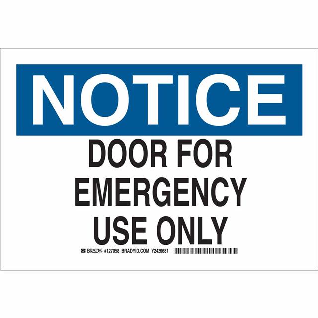 This is manufactured by Brady Corporation. The manufacturer part number is 127061. Label with a size of 14.00" l x 10.00" w (355.6mm x 254.0mm). The product is rohs3 compliant. It is assigned with possible HTSUS value of 3926.90.9989. It has a classic black and blue legend, white background colour. The product brady®, is a highly preferred choice for users. The product is made from highly stable and reliable polyester. In addition, it is reach unaffected. Its typical moisture sensitivity level is not applicable. In addition, bulk is the available packaging type of the product. A bespoke label is a notice. door for emergency use only label. The product is suitable for use with emergency. It has a long 4 weeks standard lead time. The brady corporation's product offers user-desired applications. The product is designated with the ear99 code number.