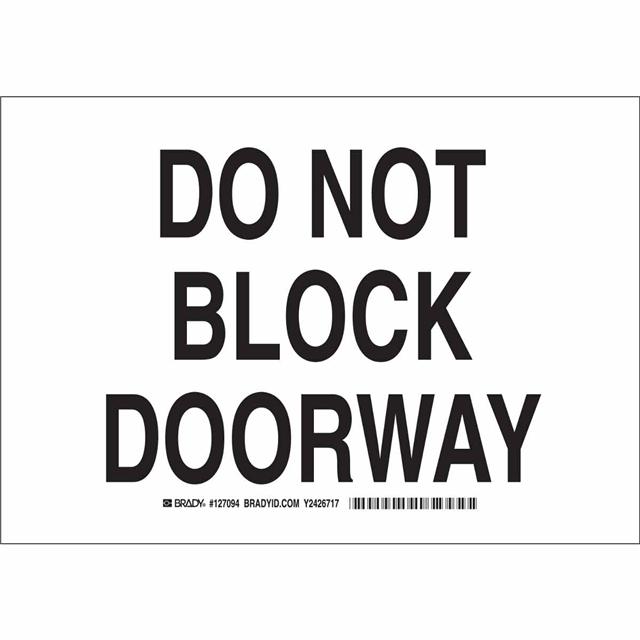 This is manufactured by Brady Corporation. The manufacturer part number is 127095. Label with a size of 14.00" l x 10.00" w (355.6mm x 254.0mm). The product is rohs3 compliant. It is assigned with possible HTSUS value of 8310.00.0000. It is shipped in bulk package . It has a classic black legend, white background colour. The product brady®, is a highly preferred choice for users. The product is made from highly stable and reliable aluminum. In addition, it is reach unaffected. Its typical moisture sensitivity level is not applicable. A bespoke label is a do not block doorway label. The product is suitable for use with warning. It has a long 4 weeks standard lead time. The product is designated with the ear99 code number.